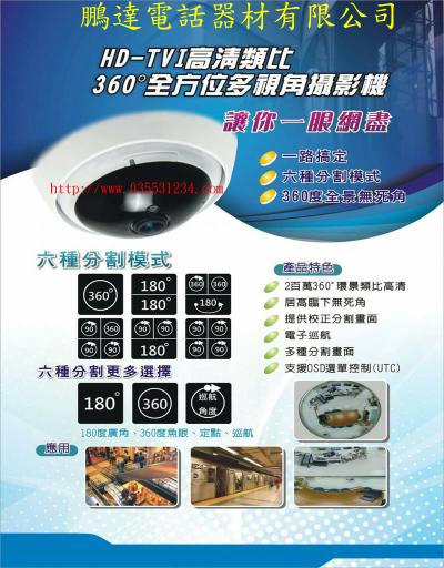 高畫質紅外線攝影機 - 1080P-360度全景高畫質6分割吸頂攝影機